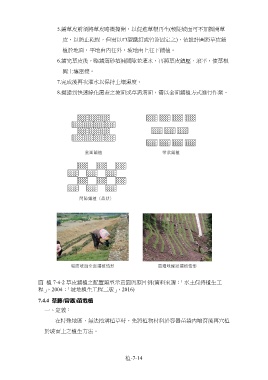 圖 植 7-4-2 草皮鋪植之配置類型示意圖與照片例(資料來源:「水土保持植生工