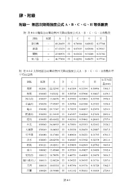 附 表 4-1-1 離島各雨量站無因次降雨強度公式A、B、C、G、H係數表