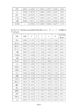 附 表 4-1-3 中部地區各雨量站無因次降雨強度公式A、B、C、G、H係數和年
