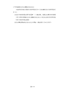 1.單位歷線U(1/12, t)轉換為U(1/6, t) 本算例係將單位歷線有效降雨延時D=1/12(hr)轉換為有效降雨延時 D=1/6。 (1)由於本案例的降雨事件係蒐集「十分鐘雨量」,故配合雨量資料的時間 尺度,將單位歷線U(1/12, t)轉換為U(1/6, t)。U(1/6, t)係指單位降雨延 時D=1/6(hr)的單位歷線。 (2)先由單位歷線U(1/12, t)求出 S 歷線,過程如附 表 4-2-2 所示。 調-4-14