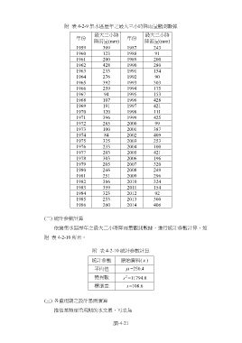 附 表 4-2-9 集水區歷年之最大三小時降雨量觀測數據