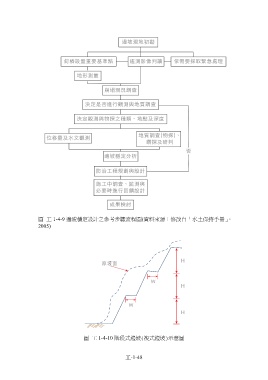 圖 工 1-4-9 邊坡穩定設計之參考步驟流程圖(資料來源:修改自「水土保持手冊」, 2005) 圖 工 1-4-10 階段式邊坡(複式邊坡)示意圖 工-1-48