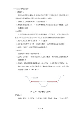 1.溢洪口之形狀,一般採用底部水平之梯形斷面,兼有其他用途者得依其