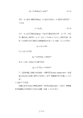 壩水流溢流水深應以曼寧公式計算之,參考「基礎調查與分析篇」之 3.2.3