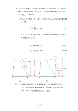 (1)Coulomb 土壓力:圖 工 2-1-16 係採用 Coulomb 方法計算主動土壓