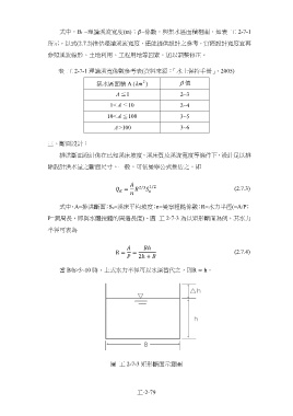 P=潤周長,即與水體接觸的周邊長度)。圖 工 2-7-3 為以矩形斷面為例,其水力