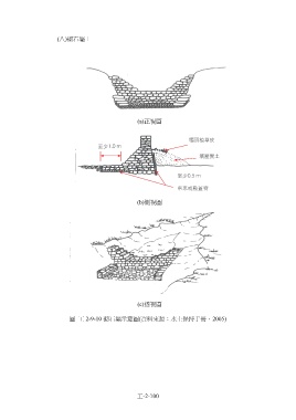 (八)砌石壩: (a)正視圖 (b)側視圖 (c)透視圖 圖 工 2-9-10 砌石壩示意圖(資料來源:水土保持手冊,2005) 工-2-100