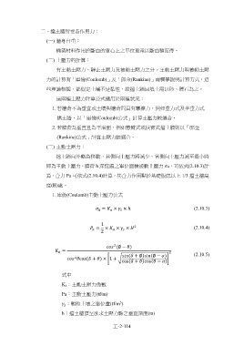 算,合力 Pa 可依式(2.10.4)計算,其合力作用點於基礎版底以上 1/3 擋土牆高