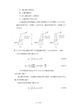 θ:擋土牆之背面與垂線之夾角。背面垂直者 θ= 0 (如圖 工 2-10-14 a)、