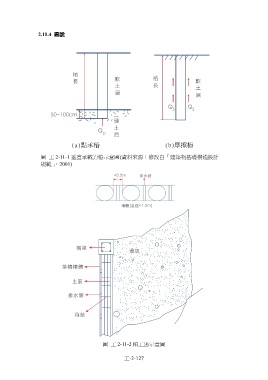 2.11.4 圖說 (a)點承樁 (b)摩擦樁 圖 工 2-11-1 垂直承載力樁示意圖(資料來源:修改自「建築物基礎構造設計 規範」,2001) 圖 工 2-11-2 樁工法示意圖 工-2-127