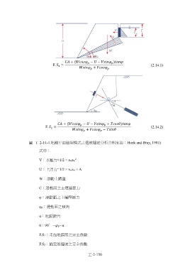 圖 工 2-14-4 地錨平面破壞模式之邊坡穩定分析資料來源:Hoek and Bray, 1981)