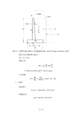 圖 附 1-2 懸臂式擋土牆受力示意圖(資料來源:修改自 Wang and Salmon, 2007)