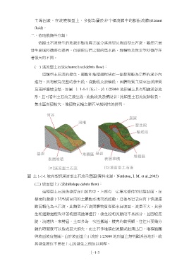 圖 土 1-1-1 坡面型與溪流型土石流示意圖(資料來源:Nettleton, I. M. et al.,2005)