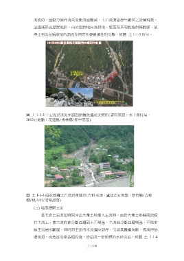 圖 土 1-1-2 土石流於溪流中游因淤積改道成災情形(資料來源:水土保持局,