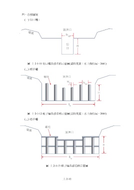 四、各部圖說 (一) 切口壩: 圖 土 2-1-11 切口壩各部名稱示意圖(資料來源:水土保持局,2001) (二) 梳子壩 圖 土 2-1-12 梳子壩各部名稱示意圖(資料來源:水土保持局,2001) (三) 格子壩 圖 土 2-1-13 格子壩各部名稱示意圖 土-2-12