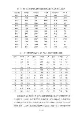 表 土 3-4-2 歷年降雨事件之 RTI 值依大小排列及對應之機率