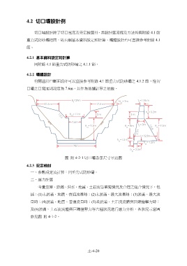 有關溢洪口斷面設計可以直接參考附錄 4.1 節重力式防砂壩之 4.1.2 節,惟切