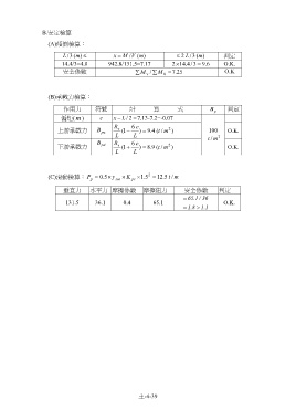 (C)滑動檢算: P = 5 . 0 ×γ sat × K pc × 5 . 1 2 = 12 5 . t / m