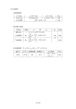 (C)滑動檢算: P = 5 . 0 ×γ sat × K pc × 5 . 1 2 = 12 5 . t / m