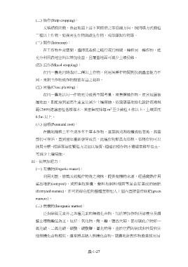 利用刈割、修剪及收穫作物後之殘株,提供有機物來源,經過腐熟作用