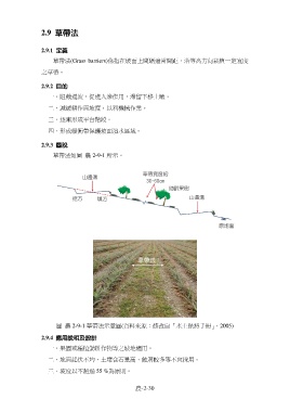 草帶法(Grass barriers)係指在坡面上間隔適當間距,沿等高方向栽植一定寬度