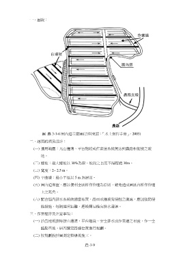 (一) 於農地規劃時按山邊溝、平台階段、安全排水或作業道之布置,作一全