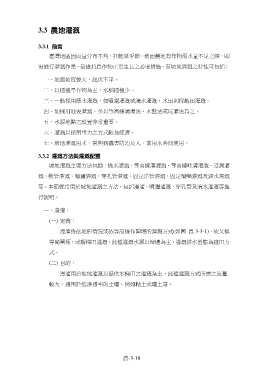 三、一般採用節水灌溉,如噴灑灌溉或滴水灌溉,水田則採越田灌溉。