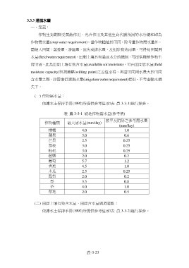 moisture capacity)與凋萎點(wilting point)之差值求得。再當田間用水量大於田間
