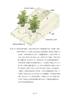 圖 植 1-2-3 樹木對坡面錨錠、支撐及拱壁作用之示意圖(資料來源:林信輝,2004)