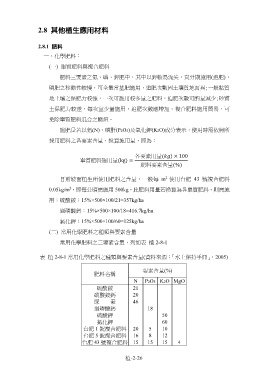 表 植 2-8-1 常用化學肥料之種類與要素含量(資料來源:「水土保持手冊」,2005)
