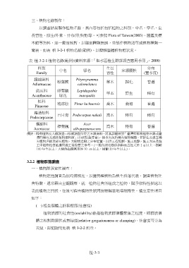 覽表,如表 植 3-2-1 植物名錄(範例)。以瞭解整體植物相狀況。